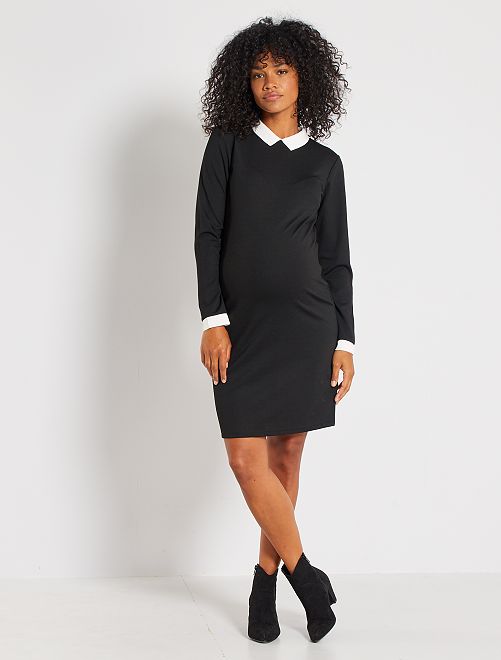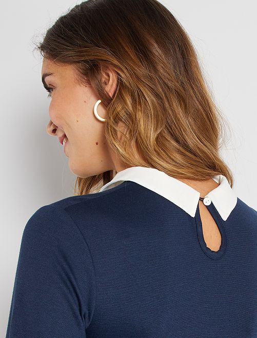 - Efeito 2 em 1: gola claudine e bordo das mangas branco